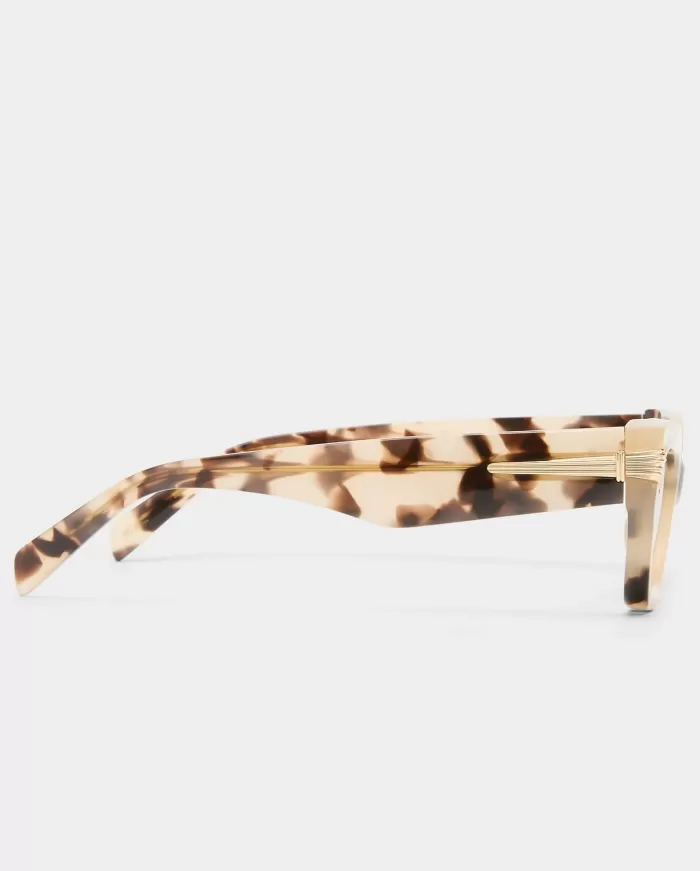 The Cameron is a luxurious rectangle cat eye frame, designed using thick acetate and embellished with premium gold scalloped detailing which wraps around the temple. Featuring premium cream tort acetate and a brown tint lens, this handcrafted frame is bringing effortlessly chic to any fit.