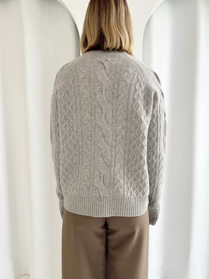Experience warmth and comfort with our best-selling Murphy Merino Cable Knit. Made from 100% merino wool, this sweater features a classic crew neckline and delicate details. The relaxed cable design adds a touch of style & practicality to your winter wardrobe. Stay cosy and stylish with this effortless must-have piece. Available in 2 colourways: Oat Marle and Grey Marle